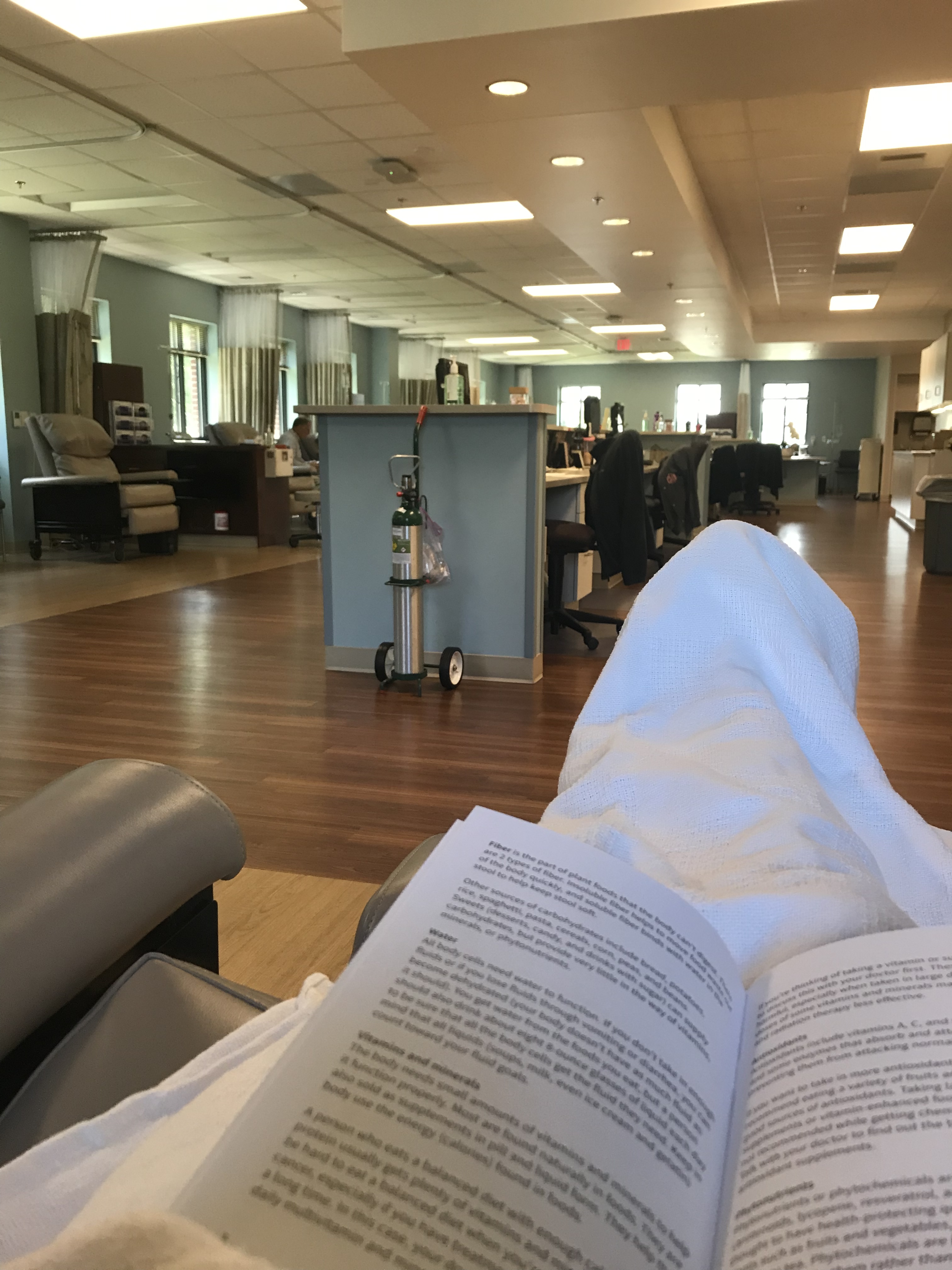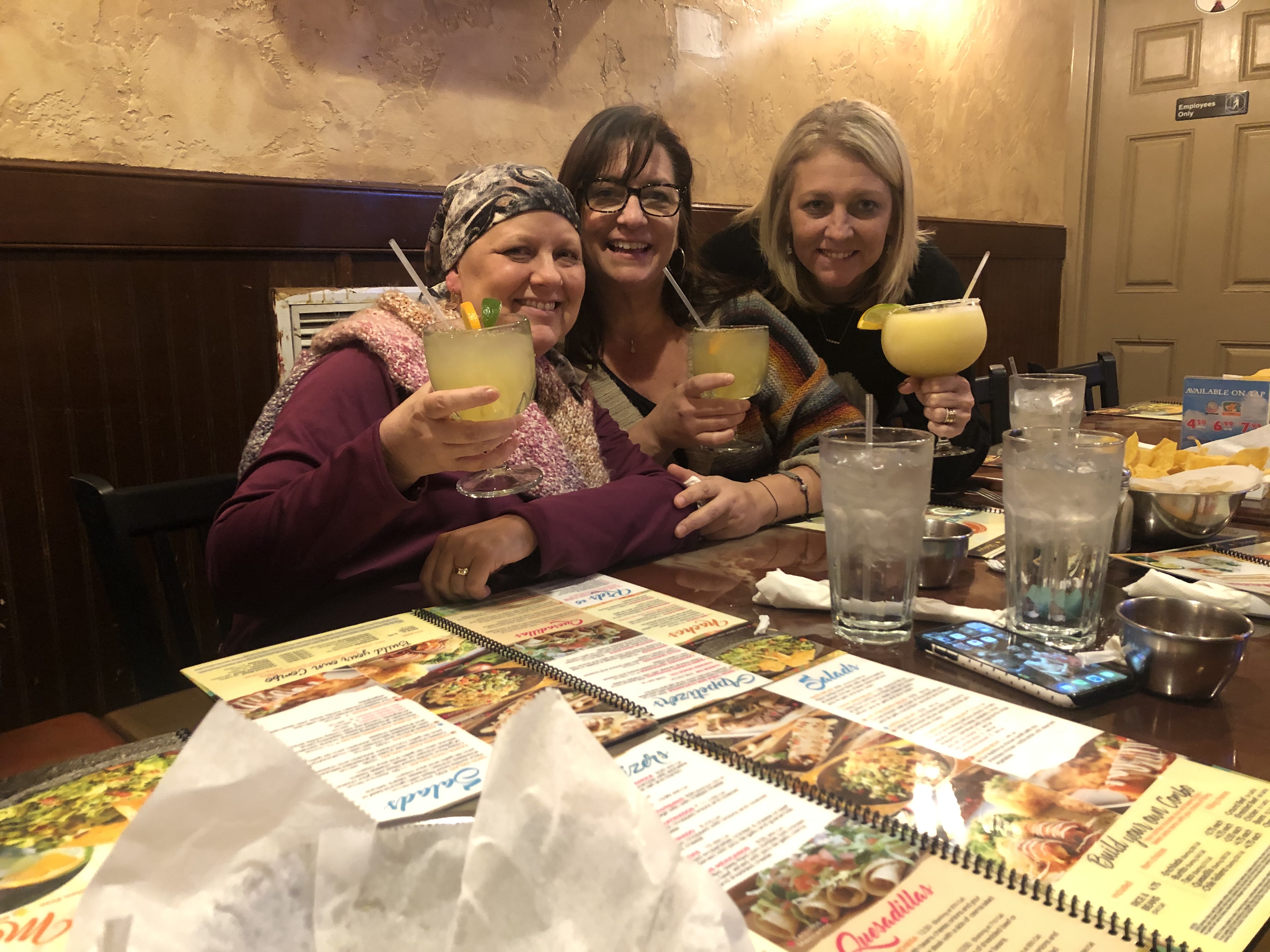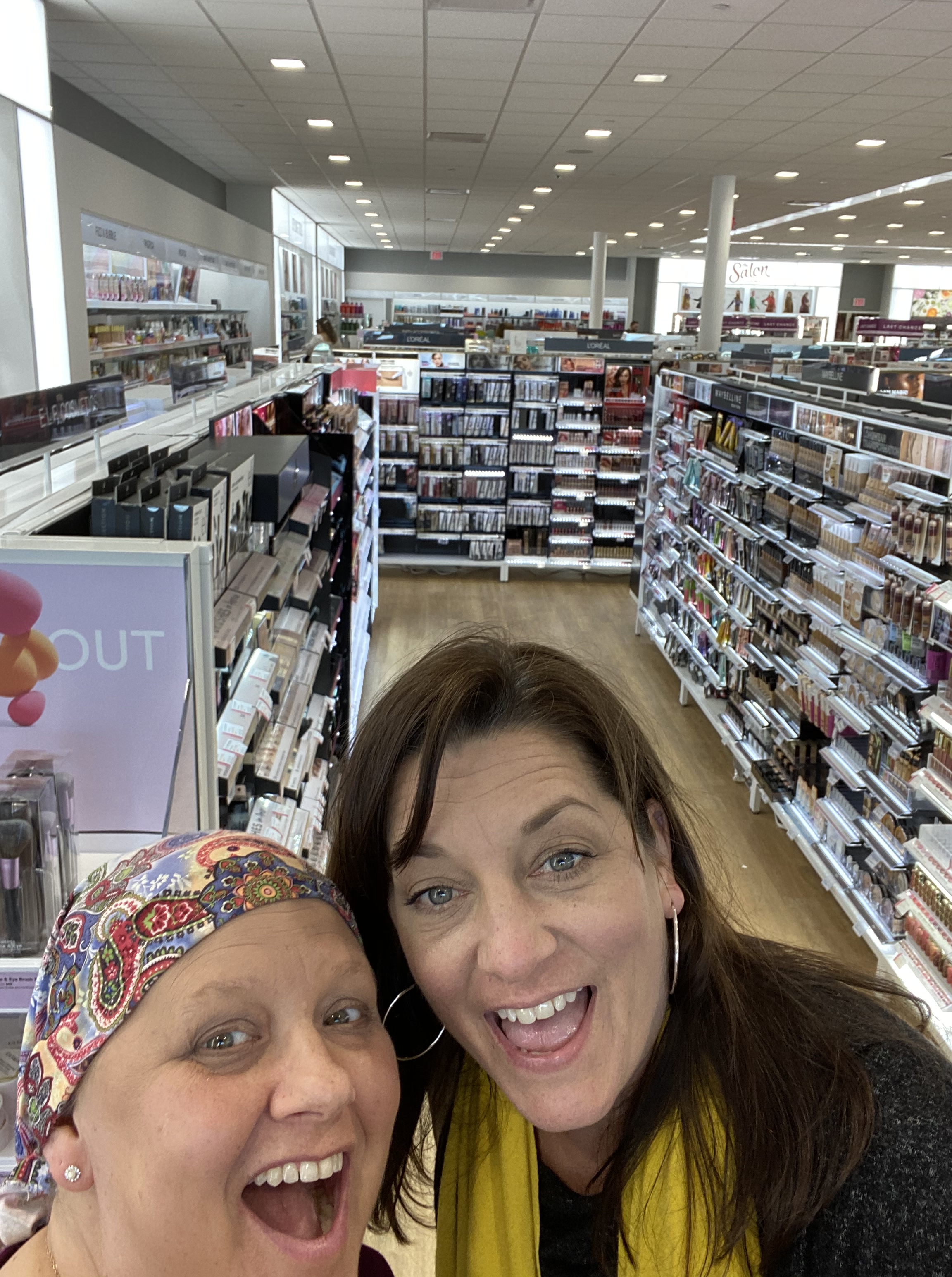 Kenneth and I had hot dates to Greenville once every two weeks for four weeks for my AC treatment (otherwise known as the “red devil”) and then once a week for 12 weeks for Taxol. Each morning we would pack a little cooler, Kenneth would stop at Alligator Marina for a biscuit, I’d start putting the numbing cream on my port site when we got to Williamston. Two and half hours later we were in “G-Vegas”, as the big city of Greenville is affectionately called those of us on the Outer Banks. I tried to talk Kenneth into dropping me off and going to run errands or whatever in Greenville but he wouldn’t leave my side. The nurses were amazing throughout and Dr. White continued to cheer me on. They called Kenneth my guard dog as he sat by my side as I fell asleep during treatments. Besides the weird neuropathy, crazy change in diet, hair loss, and cancer fatigue that truly warrants its own word, I kept up pretty well with everything going on. Now remember, we had just moved into a new house and I wasn’t working so my new job was to unpack a box a day and of course shop for new things we needed for the house. My shopping partner in crime, Kim, would wisk me away in her little cute Audi- her, dressed to the nines of course and me in one of my fancy scarves. She always made me feel beautiful-she has that way about her. I remember one very specific time when I flat couldn’t keep my eyes open as we were playing. She told me she was going to run into Food Lion and next thing I know, I was snoring in the car! Going out with Kimmy was my escape from reality-we shopped, ate, went to the movies, stayed home and watched our “based on a true story” favorites, and talked until I couldn’t anymore, my mouth and my face would literally stop working.