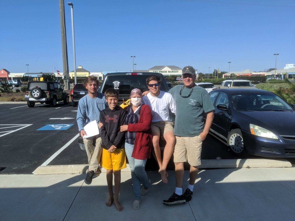 We held our breath each day that the treatment center would stay open during the new COVID days. Each day they took my temperature and I proceeded into the treatment center. 20 days later my radiation was complete. As I walked out, I not only got to ring another bell but when I got outside all of the boys were waiting for me! Kenneth had surprised me with the greatest gift of support, my family.