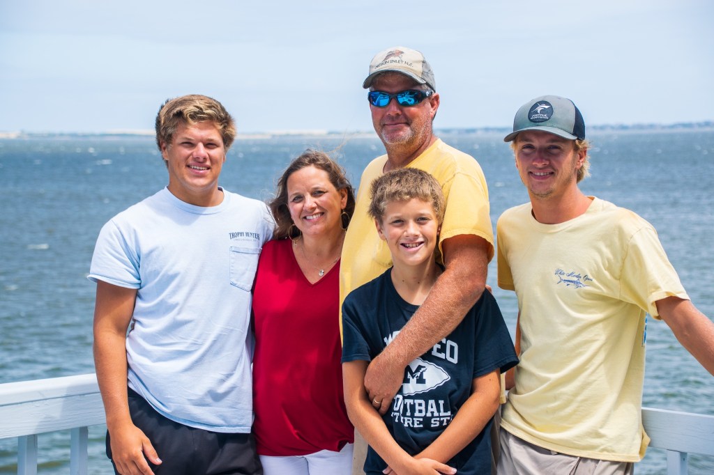 This is US! Ok, stole that from one of my favorite shows but it fits! I’m Liz Brown and this is my crew—my husband, Kenneth with my boys Will, Jake, & Drew. I was diagnosed August, 2019 with De novo Metastatic Breast Cancer to my bones, lots of places…blah, blah, blah! Long story, which I’ll cover through out, later, but I love this picture because I knew this would be our last family weekend together with my college boy before I lost my hair to chemo treatment. I had Jake’s sweet girlfriend Bella, a budding photographer, bring over her “big camera” as I call it. You ask, why wouldn’t you have dressed the boys for the photo, you know, matching shorts, khaki pants, hair cuts first? Well, that just wouldn’t capture our Brown family-my NC State red, boat shirts, sunglasses, fishing hats, and, of course, a Manteo football shirt-done! Water is a staple in our world so the sound out of our back door at our new house is a fitting background. Through all of this, I have definitely found there is, in fact, “something in the water” that is truly healing! I love my boys and being a boy mom! I love raising my crew on the Outer Banks of NC in the sweet little town of Manteo where our kids are in/on the water more than land, teachers are still heroes, fishermen work tirelessly to support their families, you can actually see the Friday Night lights from the main road, kids find empty “sandlots” to throw a baseball, and faith can be found on every corner as a community staple. Ok fine, I could definitely use a Target a little closer than an hour and a half away but I guess the deer target in the backyard will do!! Ha! Looking forward to sharing my story, slowly but surely!
